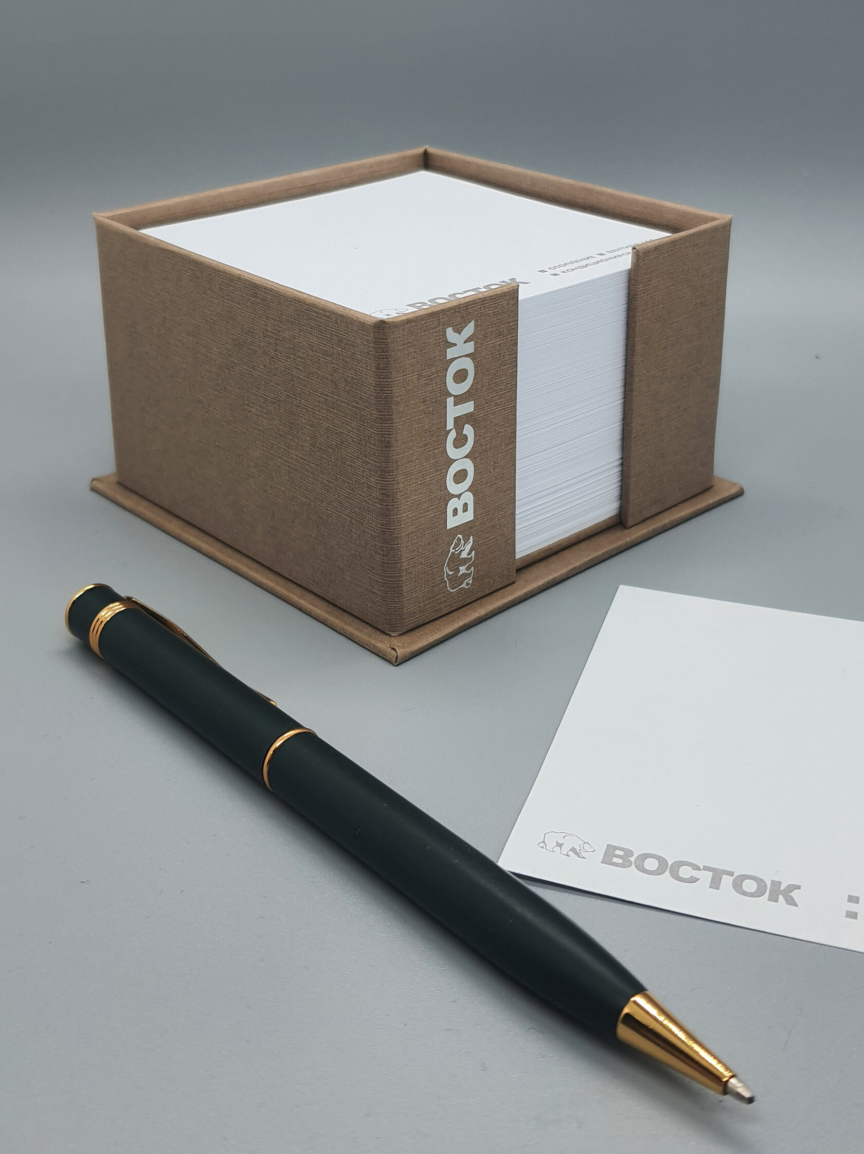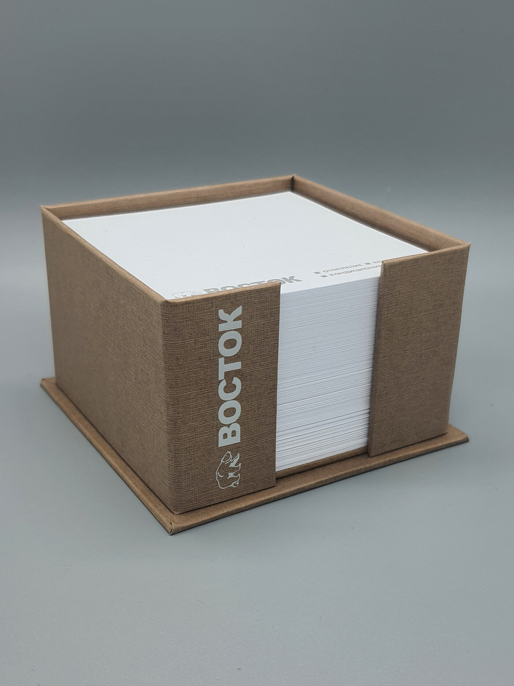 Кубарик. Подставка под бумажный блок для записей с тисненым логотипом.